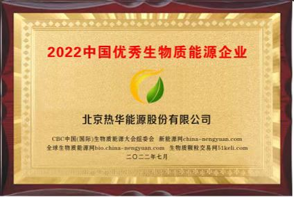 北京熱華能源股份有限公司獲得“2022中國優(yōu)秀生物質(zhì)能源企業(yè)”。